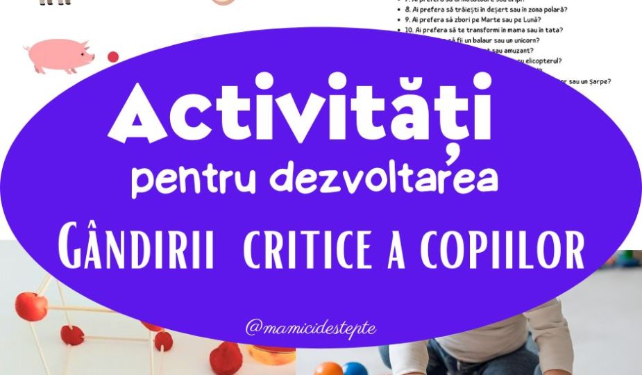 Dacă acest articol despre dezvoltarea gândirii critice ți-a plăcut, nu uita să dai follow paginii mele de Facebook. Pentru a fi la curent cu publicarea altor articole, înscrie-te în grupul de Facebook Activități distractive și educative pentru copii