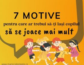 Cântați împreună! Este o modalitate excelentă de relaxare pentru tine și o ocazie bună pentru copil de a mai învăța câteva cuvinte. După ce copilul este familiarizat cu cântecelul, oprește-te în timpul cântatului, astfel încât să continue cel mic singur. De exemplu: “Trei pisicuțe micuțe și….(aici te oprești, să spună copilul cuvântul drăguțe), și-au pierdut ale lor….(te oprești, să spună copilul șosetuțe) 🙂